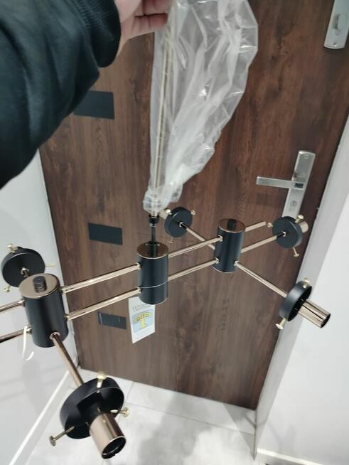 Sprzedam żyrandol 5-ramienny w stylu klasycznym: - solidny metalowy stelaż w kolorze czarnym z mosiężnymi ...